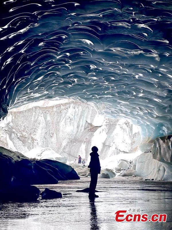 A large ice cave is discovered near a "three-colored lakes" in Puyu Village of Banbar County, Qamdo, southwest China's Tibet Autonomous Region, March 7, 2023. (Photo/China News Service)