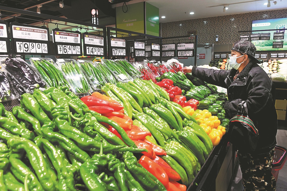 A consumer picks vegetables at a supermarket in Shijiazhuang, Hebei province, on Feb 10. [PHOTO by JIA MINJIE/FOR CHINA DAILY]
