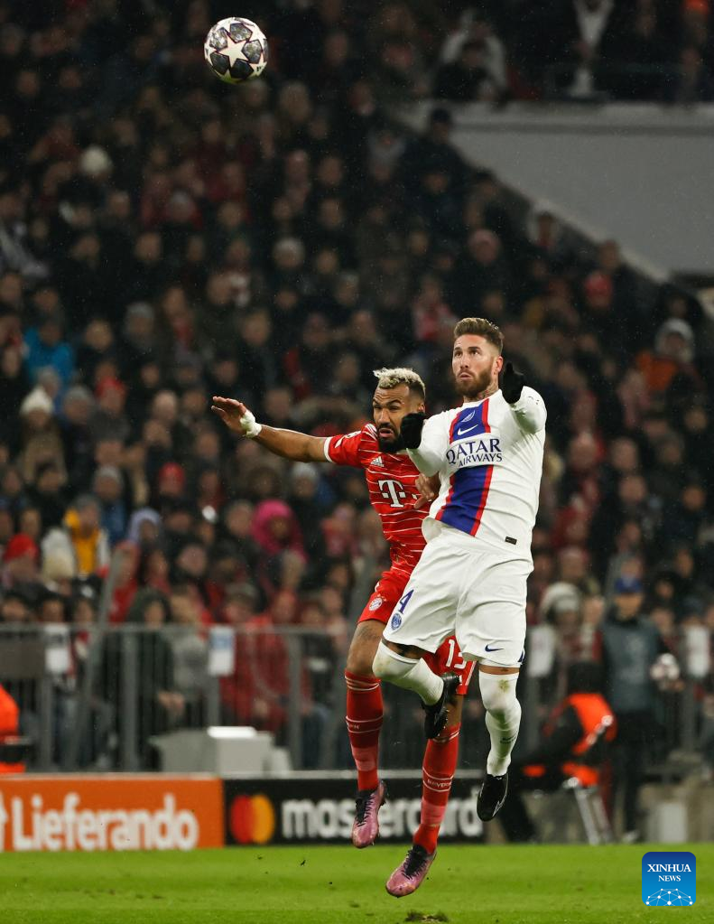 Eric Maxim Choupo-Moting (L) of Bayern Munich vies with Sergio Ramos of Paris Saint-Germain during the UEFA Champions League round of 16 second leg football match between Bayern Munich and Paris Saint-Germain in Munich, Germany, on March 8, 2023. (Photo by Philippe Ruiz/Xinhua)
