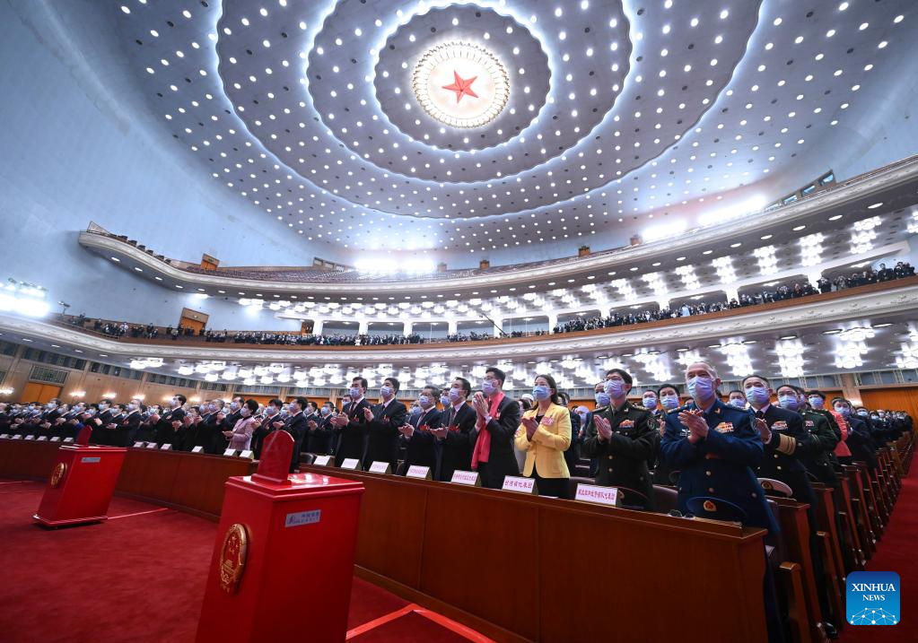 The third plenary meeting of the first session of the 14th National People's Congress (NPC) is held at the Great Hall of the People in Beijing, capital of China, March 10, 2023. (Xinhua/Yan Yan)