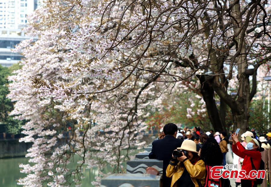 Princess trees along Jinjiang River are in full blossoms with purple flowers in Chengdu, east China's Sichuan Province, March 10, 2023. (Photo: China News Service/Lv Yang)