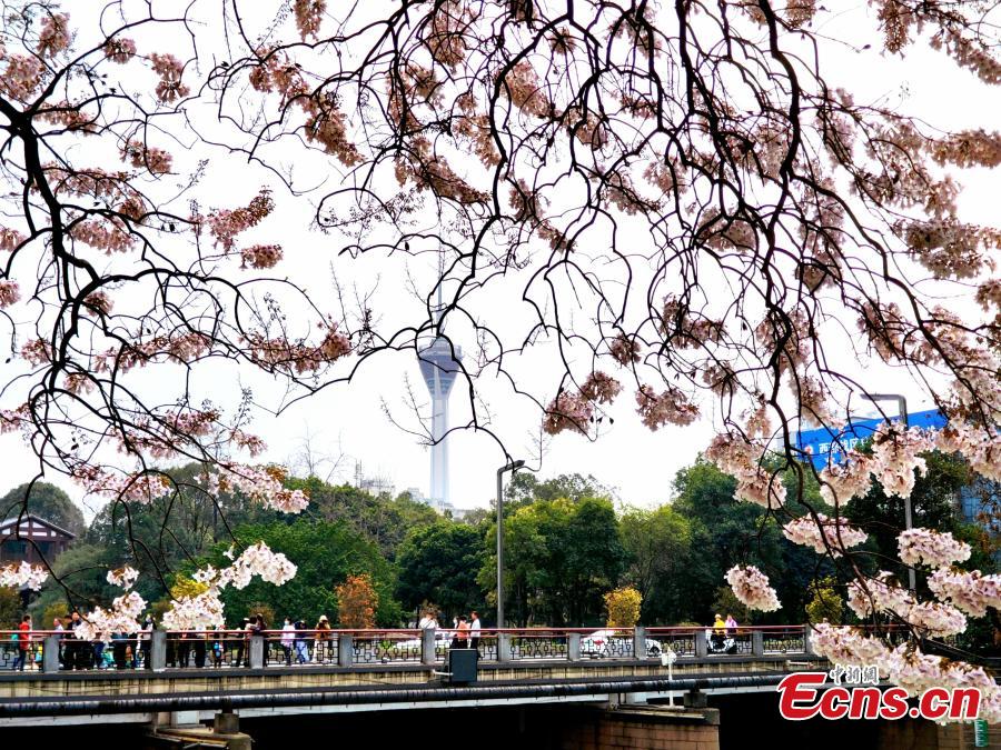 Princess trees along Jinjiang River are in full blossoms with purple flowers in Chengdu, east China's Sichuan Province, March 10, 2023. (Photo: China News Service/Lv Yang)