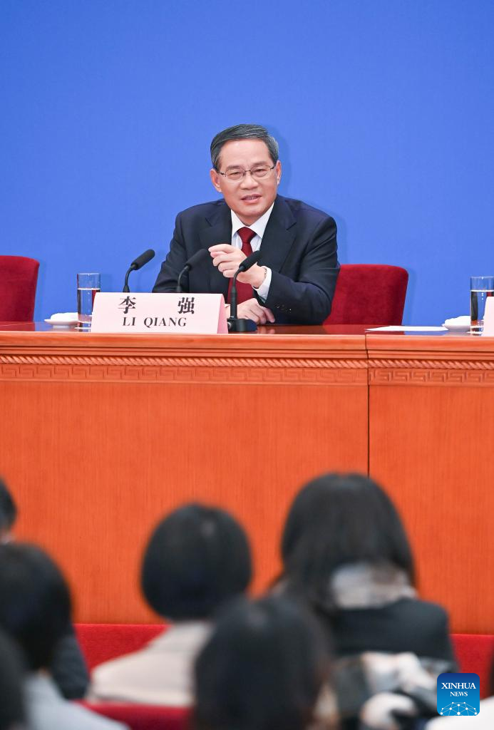 BEIJING, March 13 (Xinhua) -- Chinese Premier Li Qiang met the press after the closing of the first session of the 14th National People's Congress on Monday.