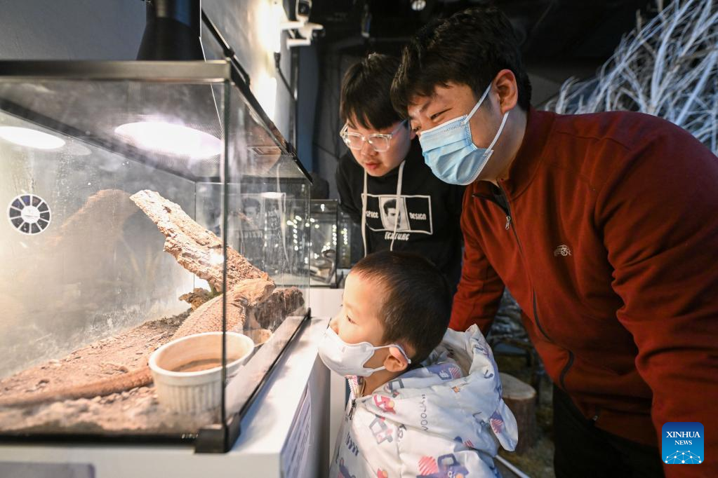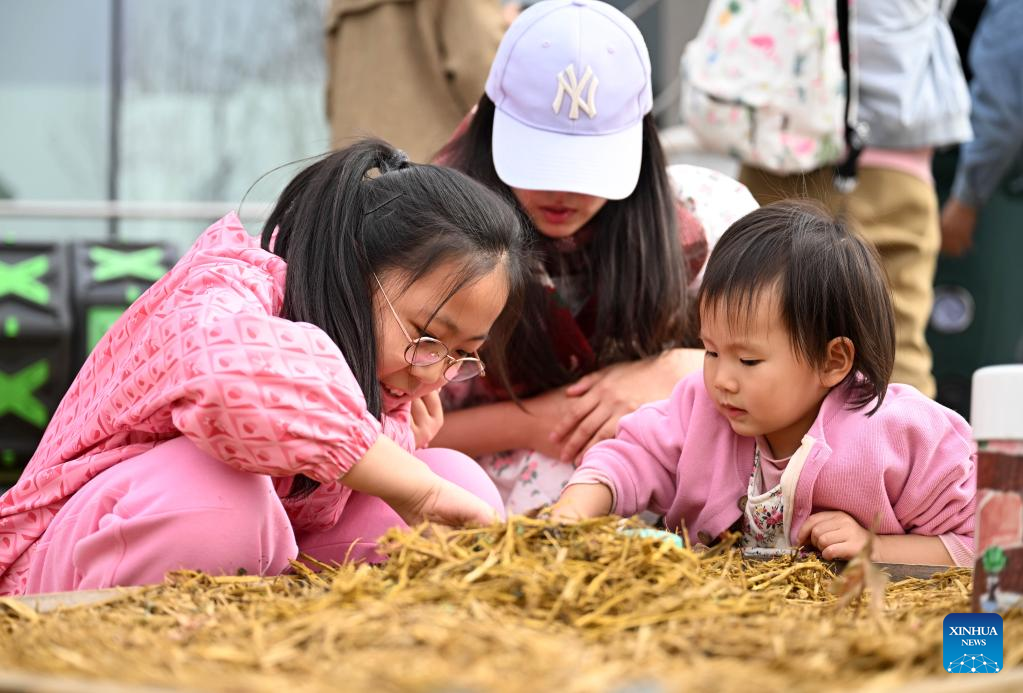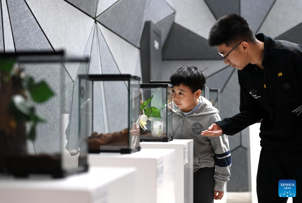 People learn about insects at an insect museum of the "eden Chunshanli" life demonstration area in Jizhou District, north China's Tianjin, March 11, 2023. (Xinhua/Zhao Zishuo)