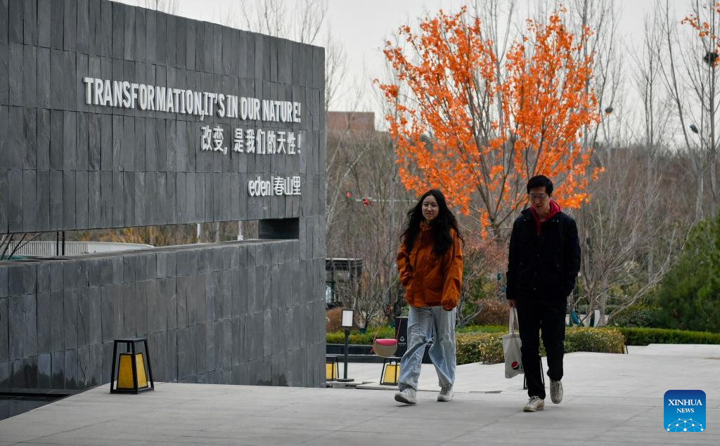 People visit the "eden Chunshanli" life demonstration area in Jizhou District, north China's Tianjin, March 11, 2023. (Xinhua/Sun Fanyue)