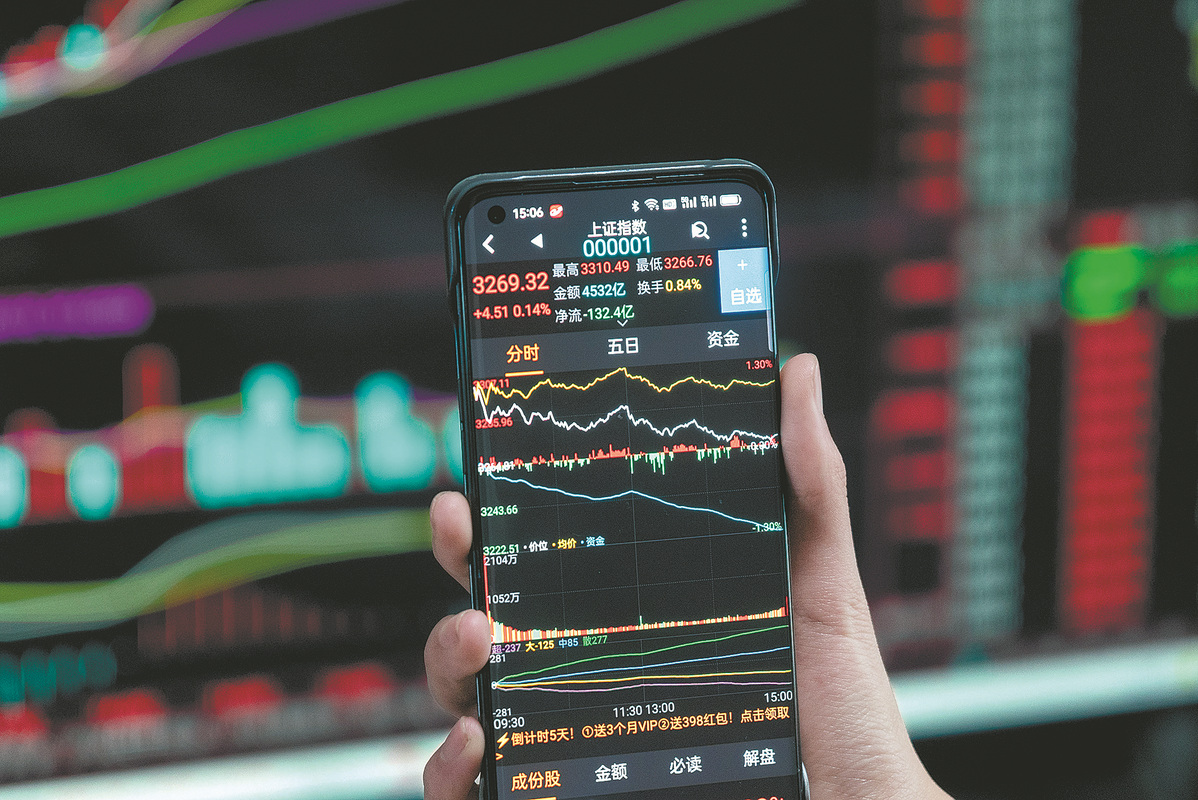 An investor in Shanghai checks stock index movements on a mobile phone. [PHOTO by WANG GANG/FOR CHINA DAILY]