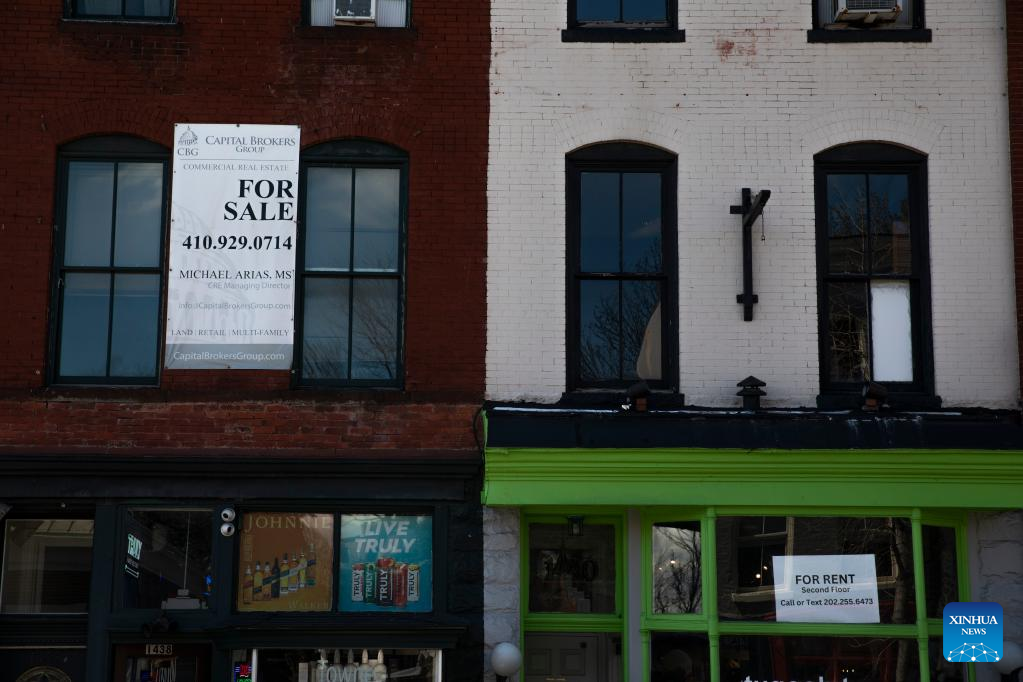 Photo taken on March 14, 2023 shows a building for sale or lease in Washington, D.C., the United States. The U.S. Consumer Price Index (CPI) for All Urban Consumers rose at 0.4 percent in February, according to government data released on Tuesday. (Photo by Aaron Schwartz/Xinhua)