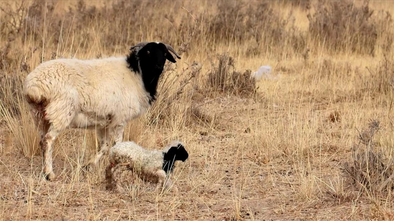 Herdspeople help ewes give birth in pastures in NW China's Mangya city (7)