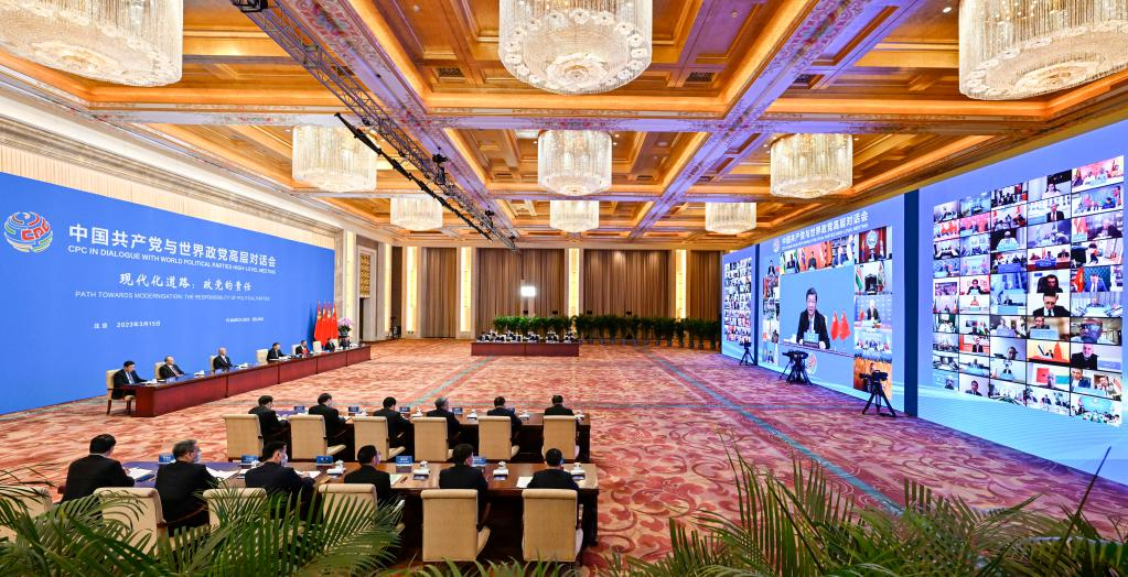 Xi Jinping, general secretary of the Communist Party of China (CPC) Central Committee and Chinese president, attends the CPC in Dialogue with World Political Parties High-Level Meeting via video link and delivers a keynote address in Beijing, capital of China, March 15, 2023. (Xinhua/Liu Bin)