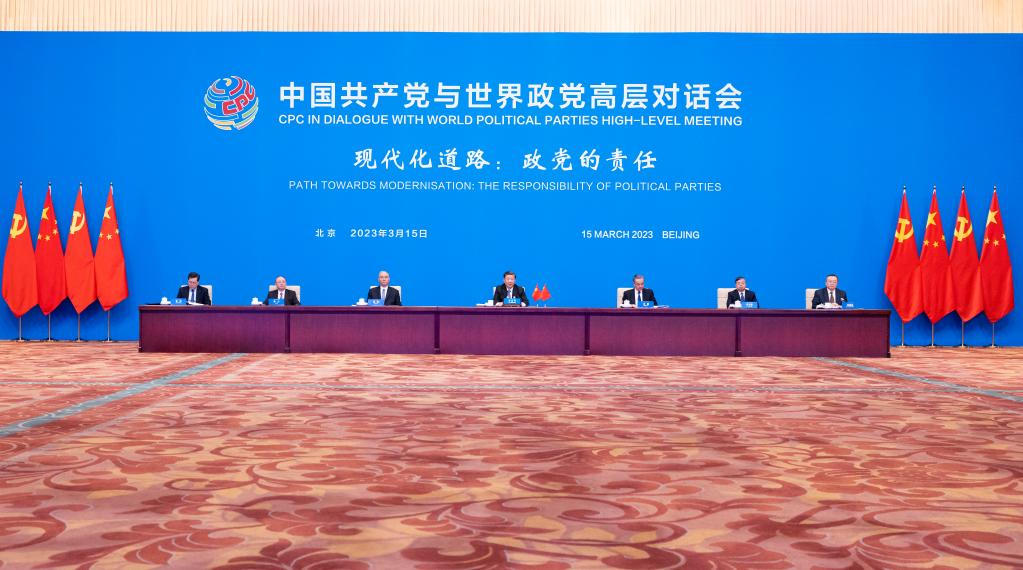 BEIJING, March 15 (Xinhua) -- Chinese President Xi Jinping, also general secretary of the Communist Party of China (CPC) Central Committee, called on world political parties to closely integrate their own development with their national modernization drives, so as to continuously steer the course and marshal strength for modernization.