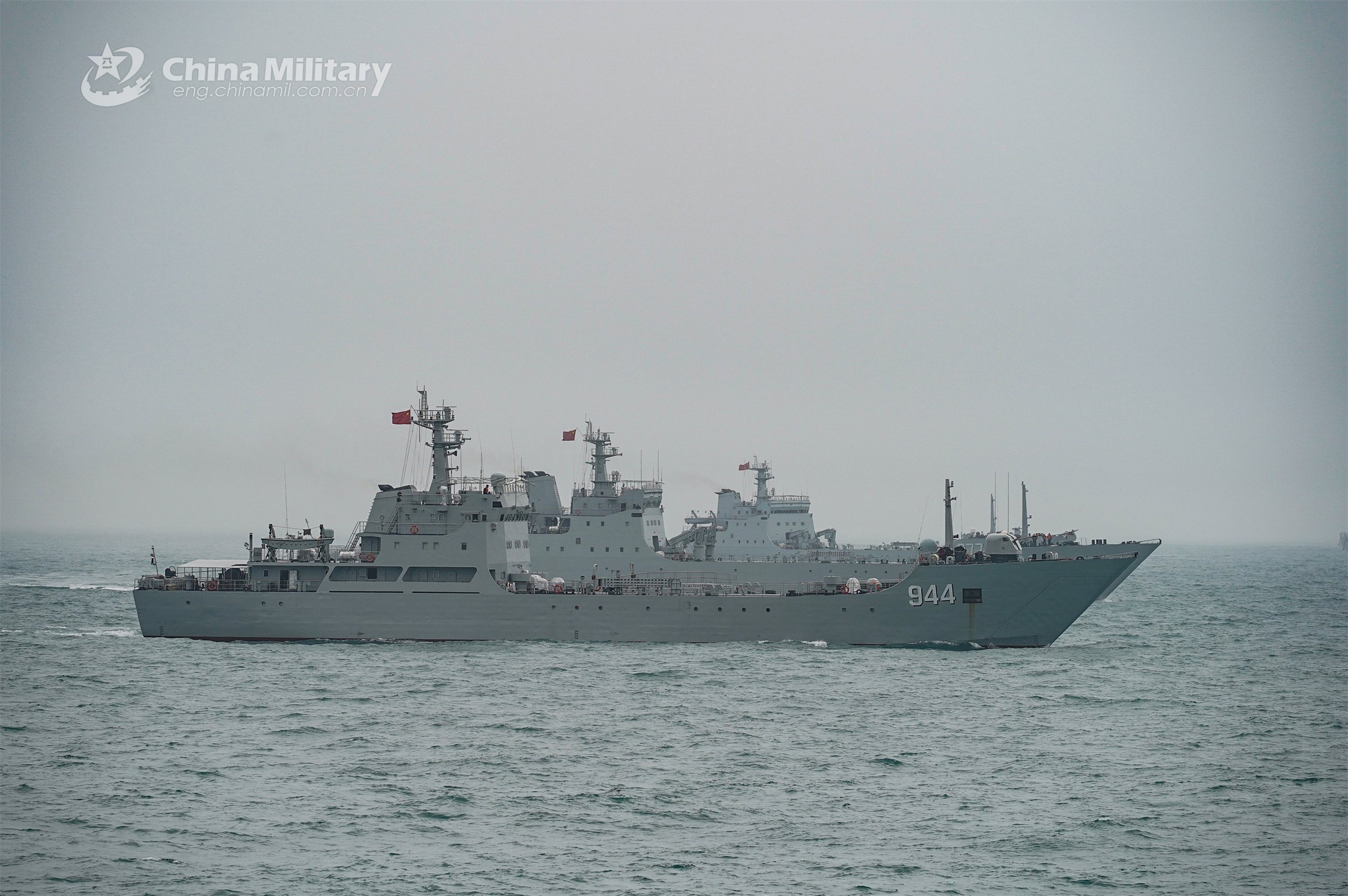 Vessels attached to a landing ship group with the navy under the PLA Eastern Theater Command steam in formation during a maritime training exercise in early March, 2023. (eng.chinamil.com.cn/Photo by Li Hao)