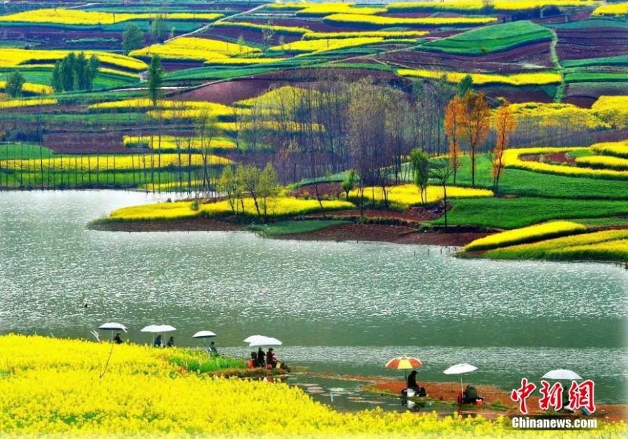 Spring colors form a natural palette across a blooming cole field in Hanzhong, northwest China's Shaanxi Province. (Photo: China News Service/Luo Hantao)