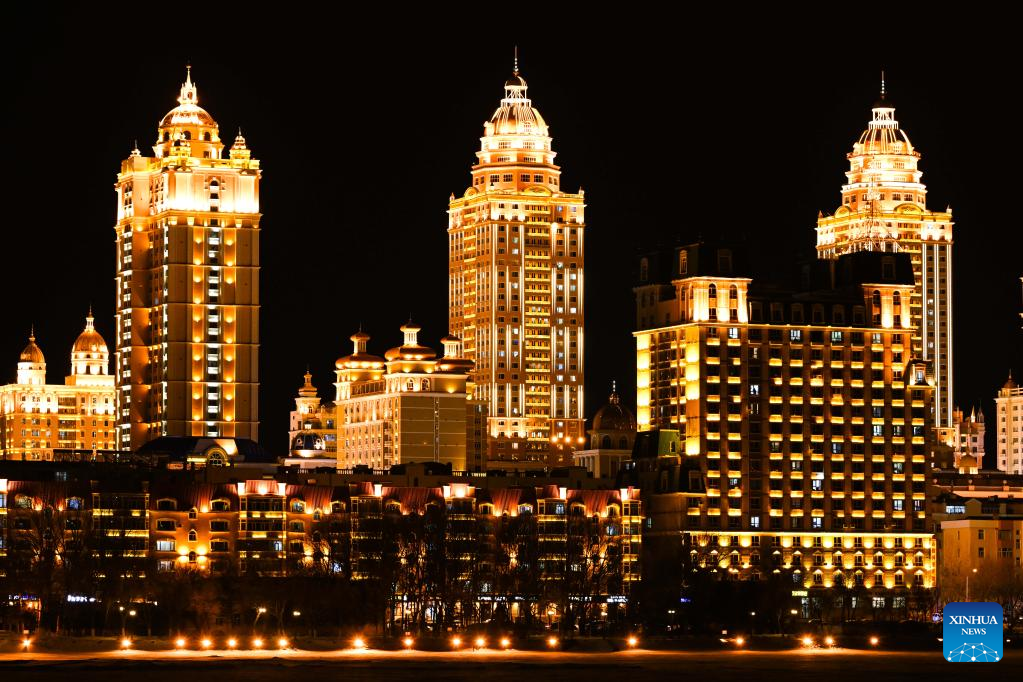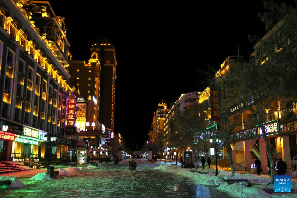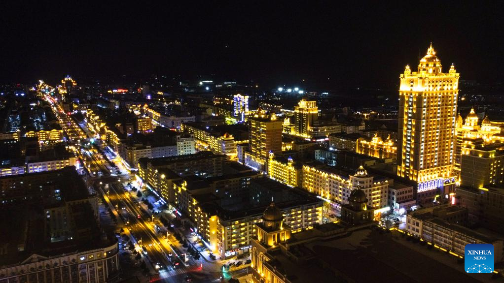 This photo taken on March 15, 2023 shows the night scenery of Manzhouli in north China's Inner Mongolia Autonomous Region. (Xinhua/Wang Kaiyan)