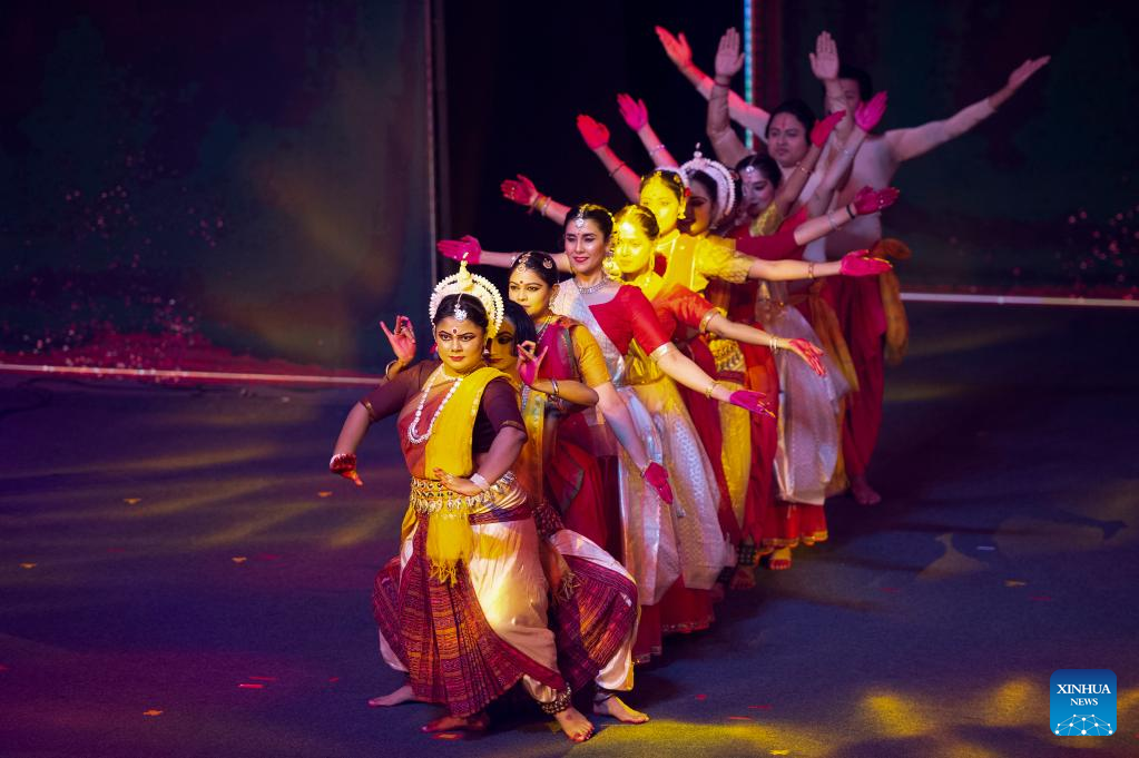 Indian artists perform traditional dance during the opening ceremony of the IBA World Women's Boxing Championships 2023 in New Delhi, India, March 15, 2023. (Xinhua/Javed Dar)