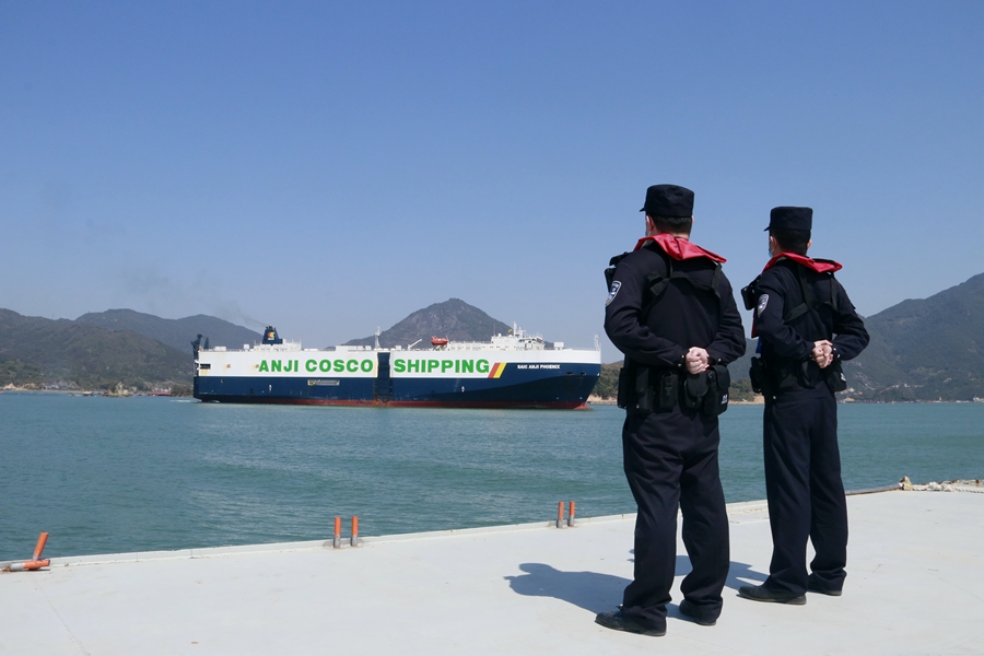 Photo shows a large ro-ro ship bound for Mexico leaving Sanduao Port in Ningde, southeast China’s Fujian Province. (Photo/Chen Da)