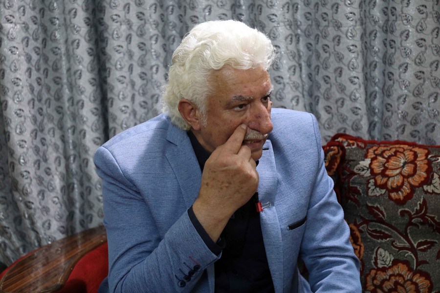 A photo taken on Feb. 9, 2023 shows Ghassan Eyada Menshid, an Iraqi journalist who was arrested by the American soldiers on July 10, 2005 and was subjected to physical and mental torture in U.S.-run prisons. (Xinhua/Khalil Dawood)