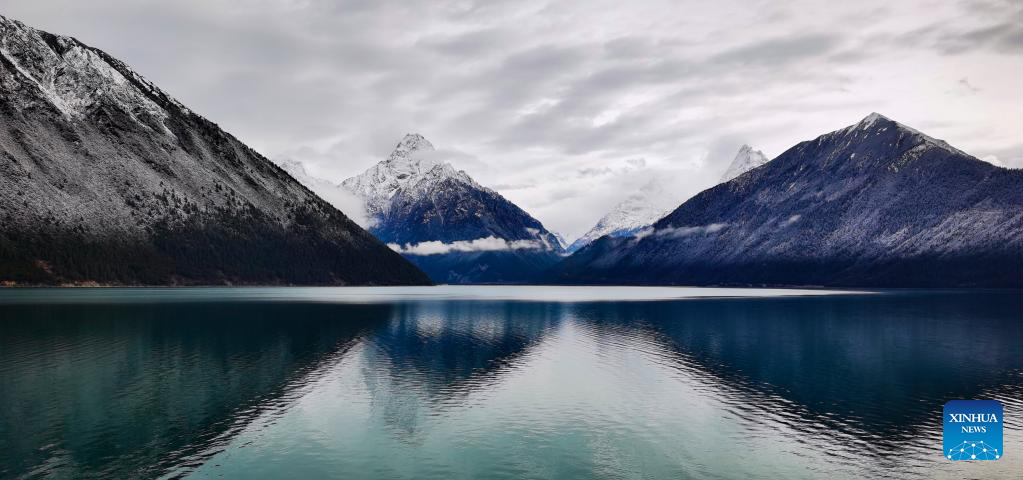 This photo taken with a mobile phone shows the scenery of Basum Lake after snow in the city of Nyingchi, southwest China's Tibet Autonomous Region, March 19, 2023. (Xinhua/Shen Hongbing)
