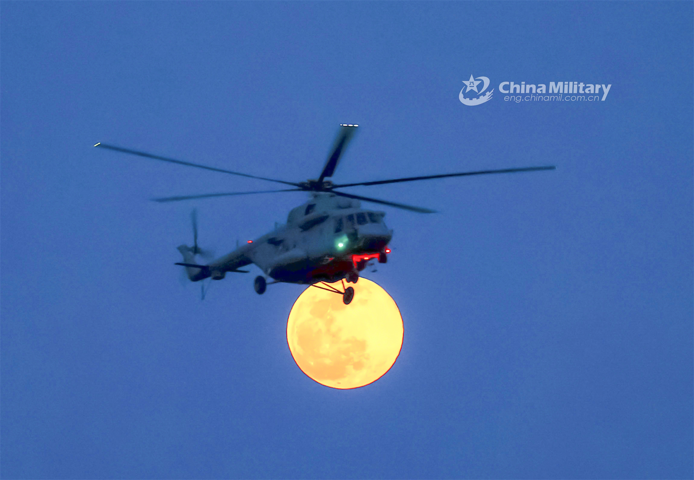 A helicopter attached to a brigade under the PLA Eastern Theater Command participates in a round-the-clock flight training exercise in mid March, 2023. (eng.chinamil.com.cn/Photo by Zhang Huanpeng)
