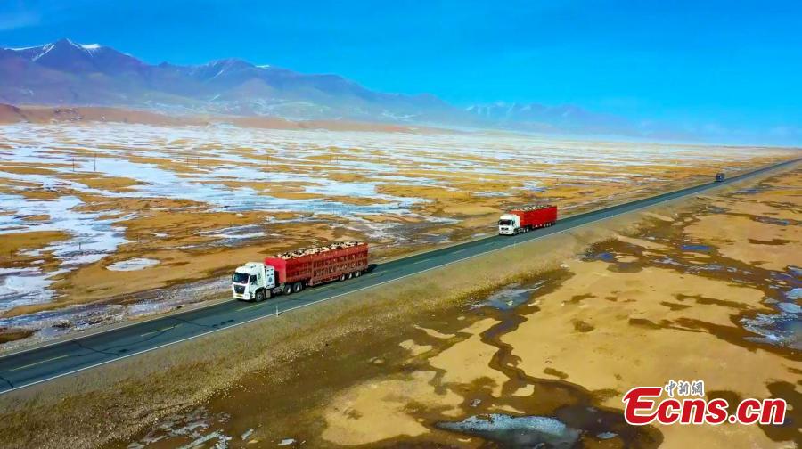 Herdsmen drive trucks on the journey to spring pastures at Bayingol Mongolian Autonomous Prefecture, northwest China's Xingjiang Uygur Autonomous Region. (Photo: China News Service/Gan Minglian)