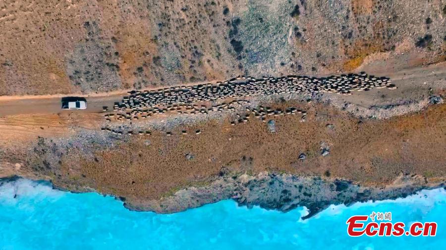 Livestock are on their journey to a spring pasture at Bayingol Mongolian Autonomous Prefecture, northwest China's Xingjiang Uygur Autonomous Region. (Photo: China News Service/Gan Minglian)