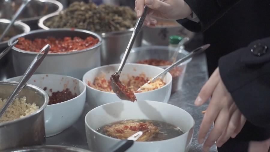 A customer puts chopped chilies in the Changsha rice noodles. (People's Daily Online/Yuan Meng)