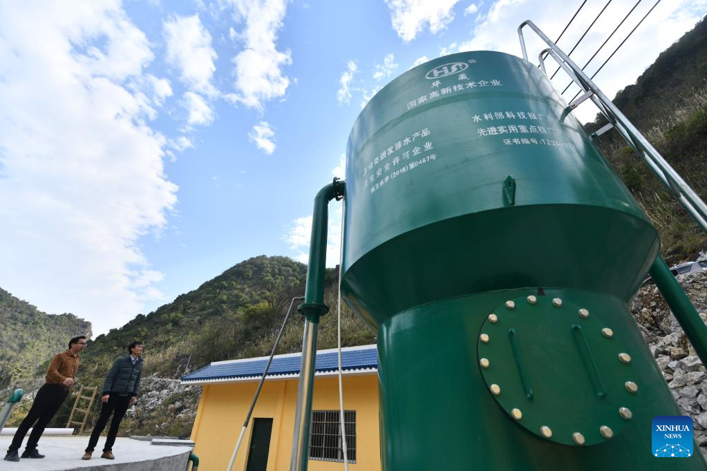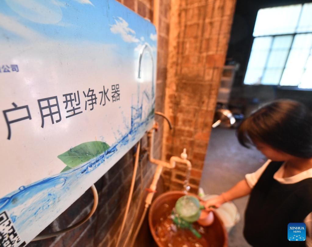 This photo taken on Feb. 6, 2021 shows a water purifier installed in Shanghe Village of Jiangnan Township, Dahua Yao Autonomous County, south China's Guangxi Zhuang Autonomous Region. (Xinhua/Huang Xiaobang)