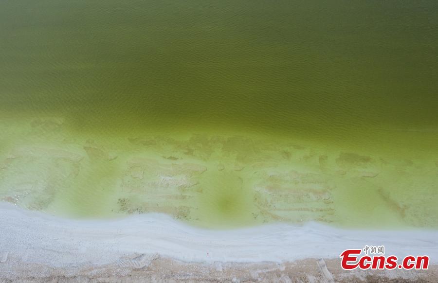 Aerial view of emerald-like Qarhan Salt Lake in Haixi Mongolian and Tibetan Autonomous Prefecture, northwest China's Qinghai Province, March 21, 2023. (Photo: China News Service/Ma Mingyan)
