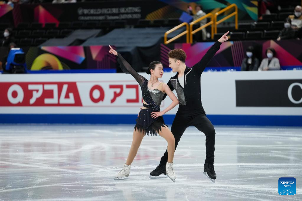 Zhang Siyang (L)/Yang Yongchao of China perform during the pairs short program at the ISU World Figure Skating Championships held at Saitama Super Area in Saitama, Japan, March 22, 2023. (Xinhua/Zhang Xiaoyu)