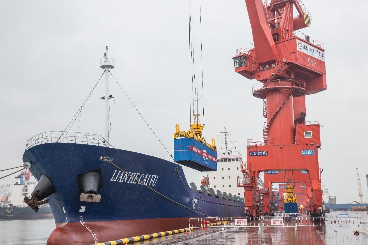 The first express sea route between China and Russia in the China-SCO Local Economic and Trade Cooperation Demonstration Area is put into operation, Sept. 14, 2022. The sea route connects Qingdao, east China's Shandong province with Russia's Vladivostok. (People's Daily Online/Hou Fangchao)
