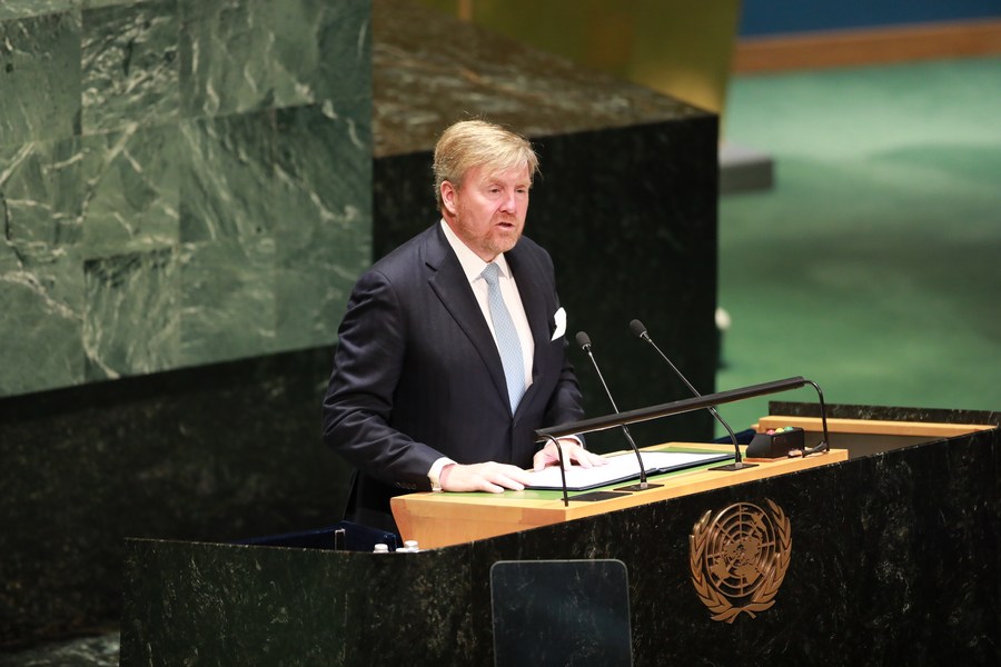 Willem-Alexander, king of the Netherlands, speaks at the opening session of the UN 2023 Water Conference at the UN headquarters in New York, on March 22, 2023. (Xinhua/Xie E)