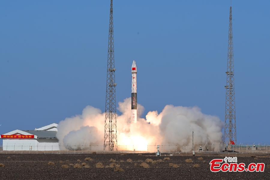 A Kuaizhou-1A carrier rocket carrying Tianmu-1 meteorological constellation with four satellites blasts off from Jiuquan Satellite Launch Center in northwest China, March 22, 2023. (Photo: China News Service/Wang Jiangbo)
