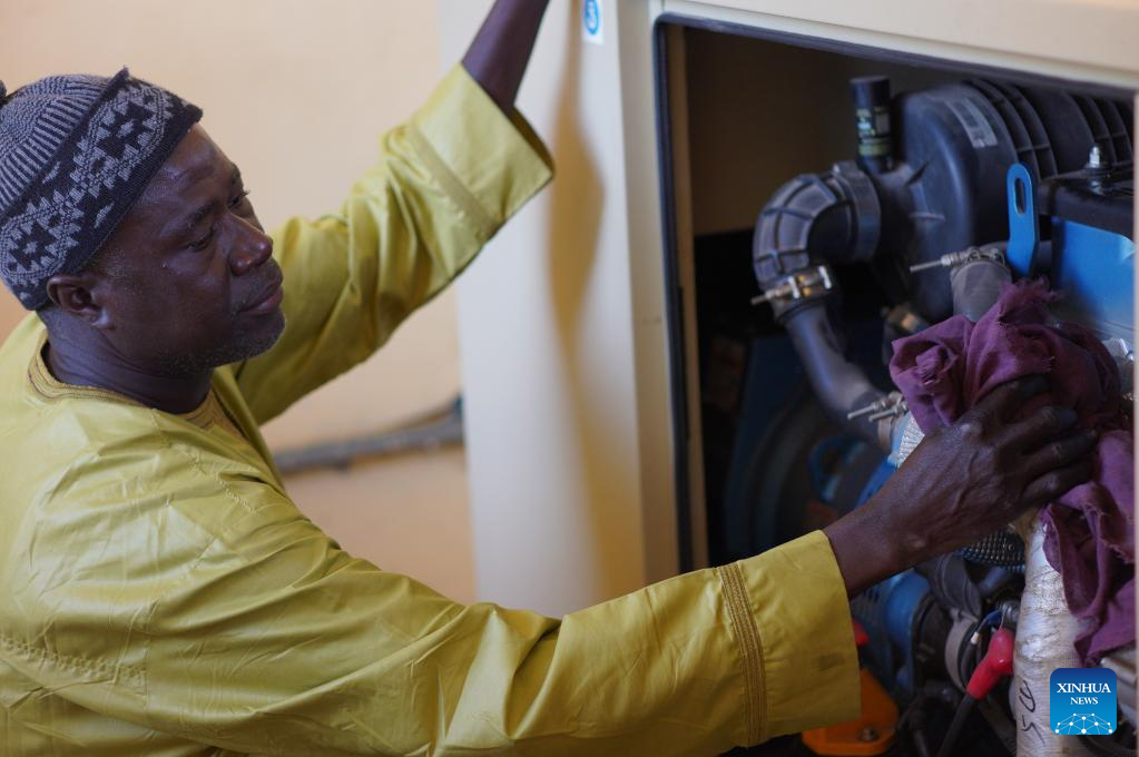 Mamadou Dieng cleans the generator set of a well project in Tenefoul Toucouleur Village, Diourbel, Senegal, March 20, 2023. (Xinhua/Wang Zizheng)