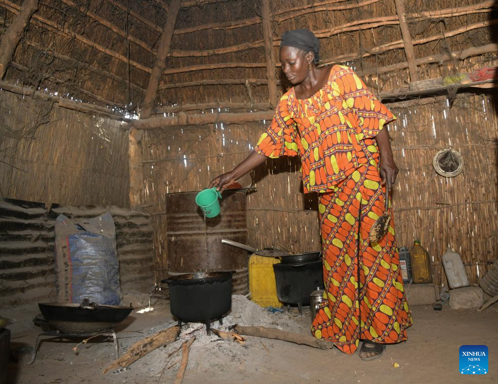 Nogaye yak, Mamadou Dieng's wife, cooks at home in Tenefoul Toucouleur Village, Diourbel, Senegal, March 20, 2023. (Xinhua/Han Xu)