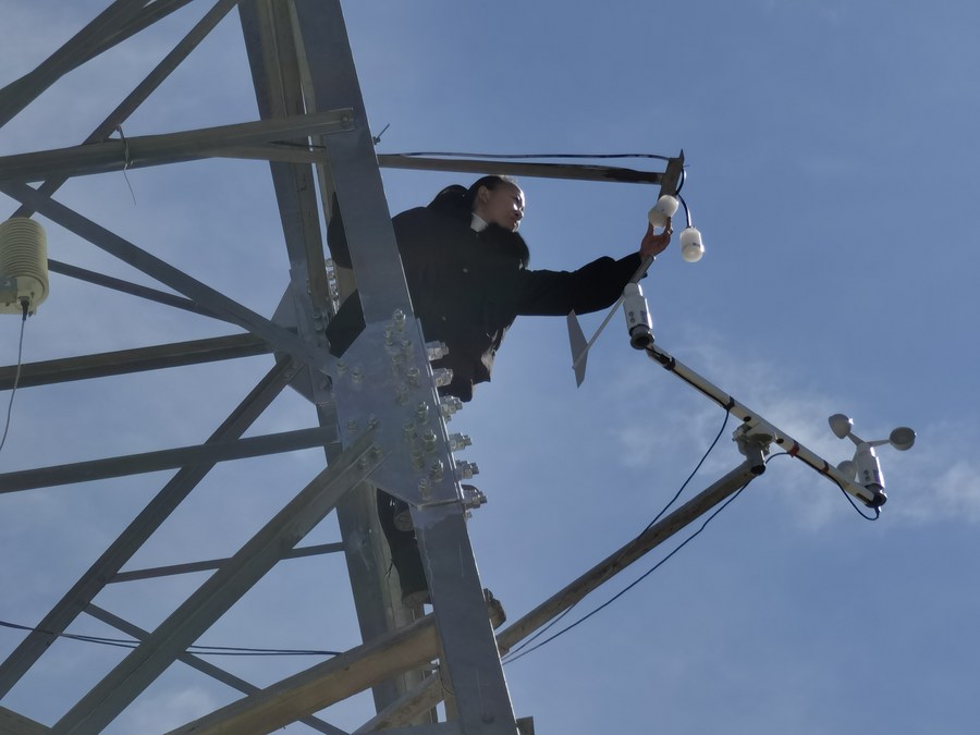 Staff member Peng Xiaoqing works at Shangri-La National Atmospheric Background Station in the Deqen Tibetan Autonomous Prefecture of southwest China's Yunnan Province, March 9, 2023. (Xinhua/Wang Changshan)
