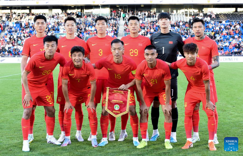 Players of China line up before an international freindly match between New Zealand and China in Auckland, New Zealand, March 23, 2023. (Xinhua/Guo Lei)