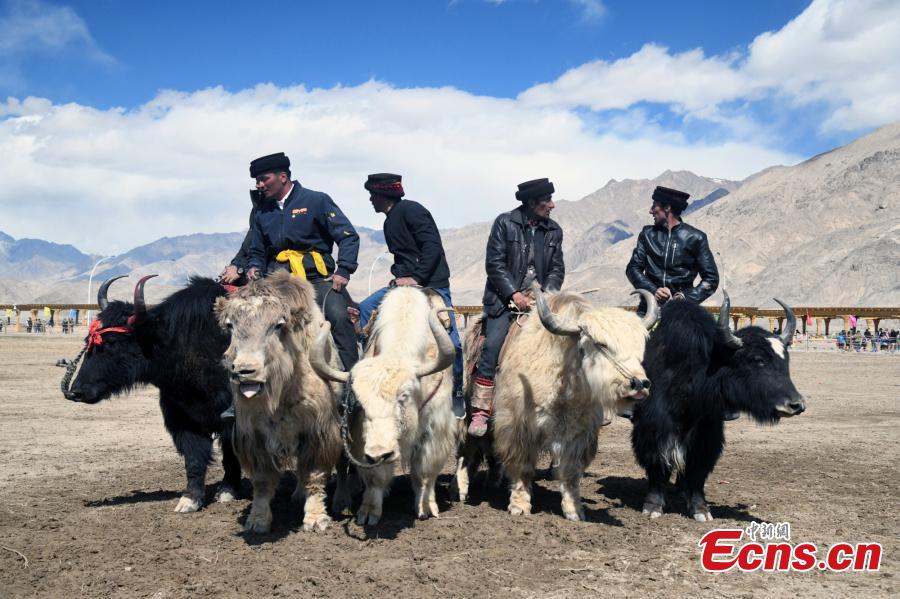 Tajik herdsmen ride yaks to catch a goat to greet the start of spring on the Pamir Plateau in Taxkorgan Tajik Autonomous County in Kashgar prefecture, northwest China's Xinjiang Uygur Autonomous Region, March 21, 2023. (Photo: China News Service/Sun Tingwen)