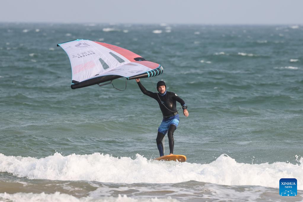 Alexander Pantyukhin surfs in Boao, south China's Hainan Province, March 22, 2023. (Xinhua/Zhang Liyun)