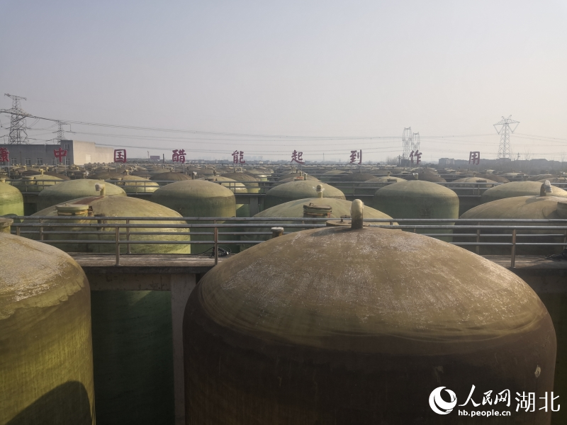 Photo shows storage tanks for citrus fruit vinegar owned by Hubei Hanway Ecological Agriculture Group, a local company in Yidu. (People's Daily Online/Wang Guoji)