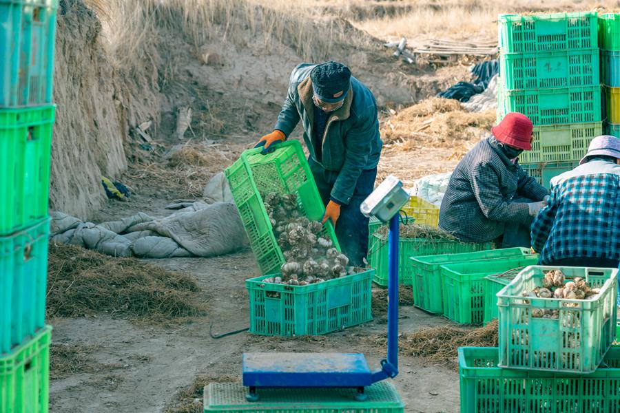 Photo shows villagers busy packing edible lilies in Yuzhong county, Lanzhou, northwest China’s Gansu Province. (Photo/People’s Daily Online)