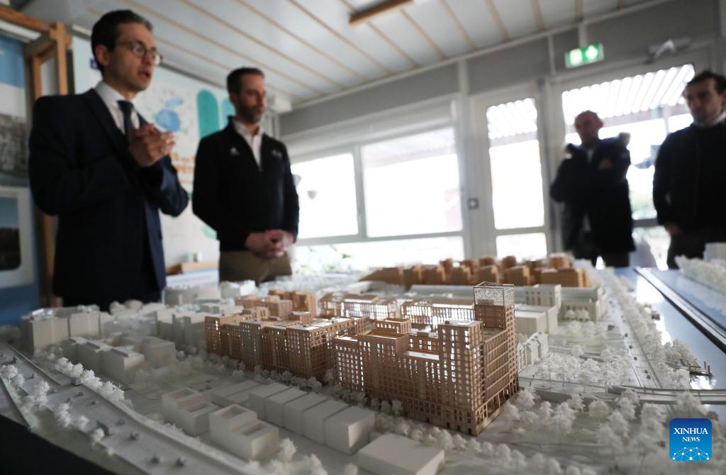 The model of athletes' village of Paris 2024 Olympic and Paralympic Games is seen in Saint-Denis, France, March 24, 2023. (Xinhua/Gao Jing)