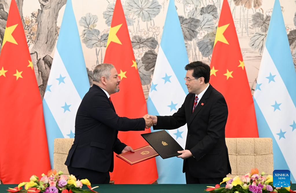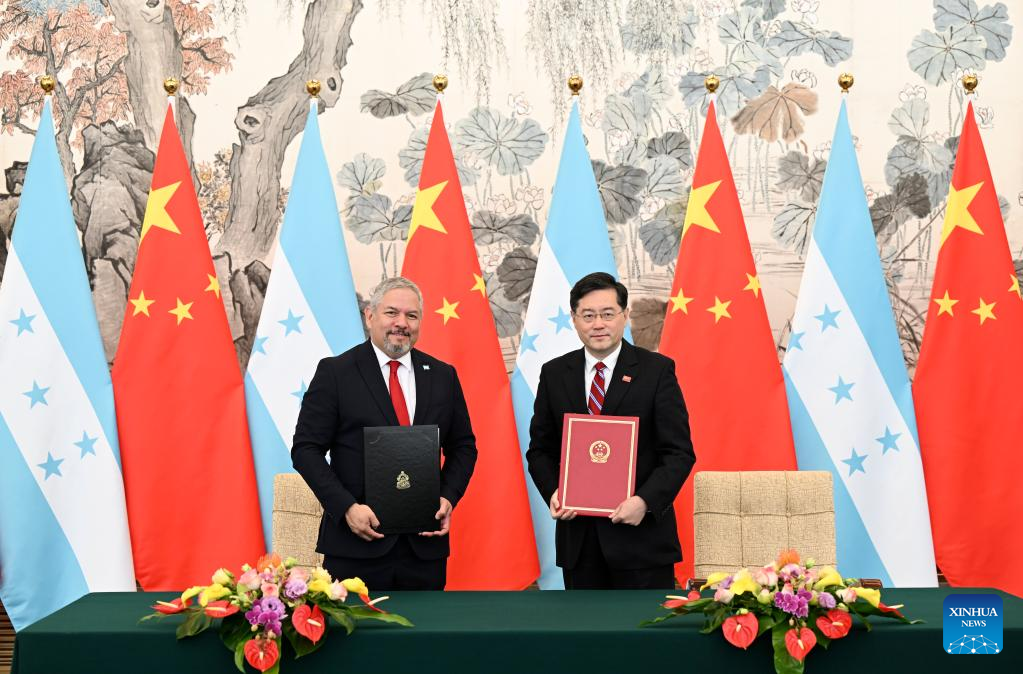 The communique was signed by Chinese State Councilor and Foreign Minister Qin Gang and Honduran Foreign Minister Eduardo Reina after they held talks.