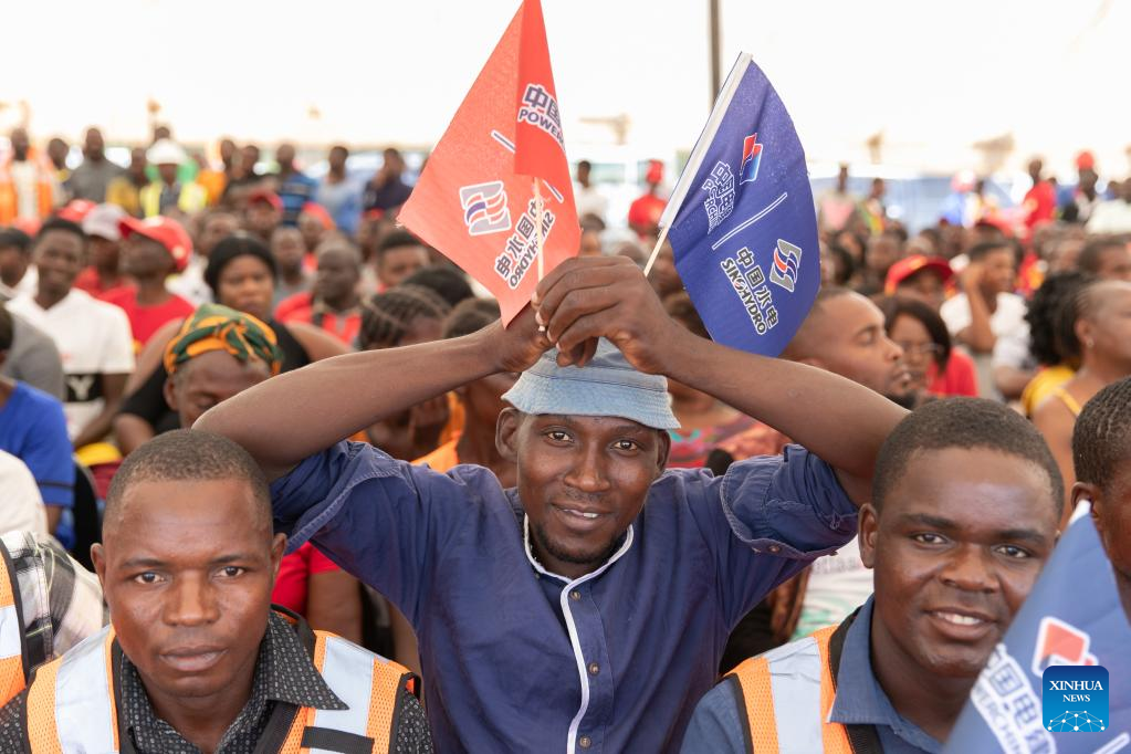 Staff members of Sinohydro Corporation Limited attend the commissioning ceremony for the fifth generator at the Kafue Gorge Lower Hydropower Station in Southern Province, Zambia, March 24, 2023. Zambian President Hakainde Hichilema officially commissioned a Chinese-built hydropower plant, following the switching on of the plant's fifth generator on Friday. (Xinhua/Peng Lijun)