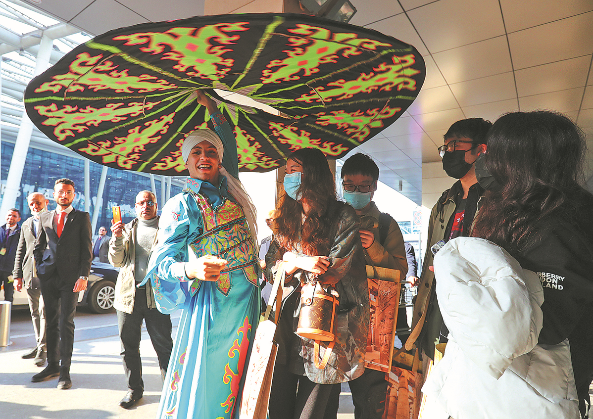 Traditional dancers welcome Chinese tourists to Cairo, the Egyptian capital, in January. [Photo/Xinhua]
