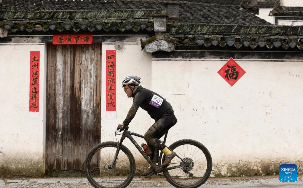 A cyclist competes during the men's MTB Race of the 18th China Huangshan (Yixian) International Cycling Open in Yixian, east China's Anhui Province. The cycling event kicked off here on Saturday. (Xinhua/Zhang Chen)