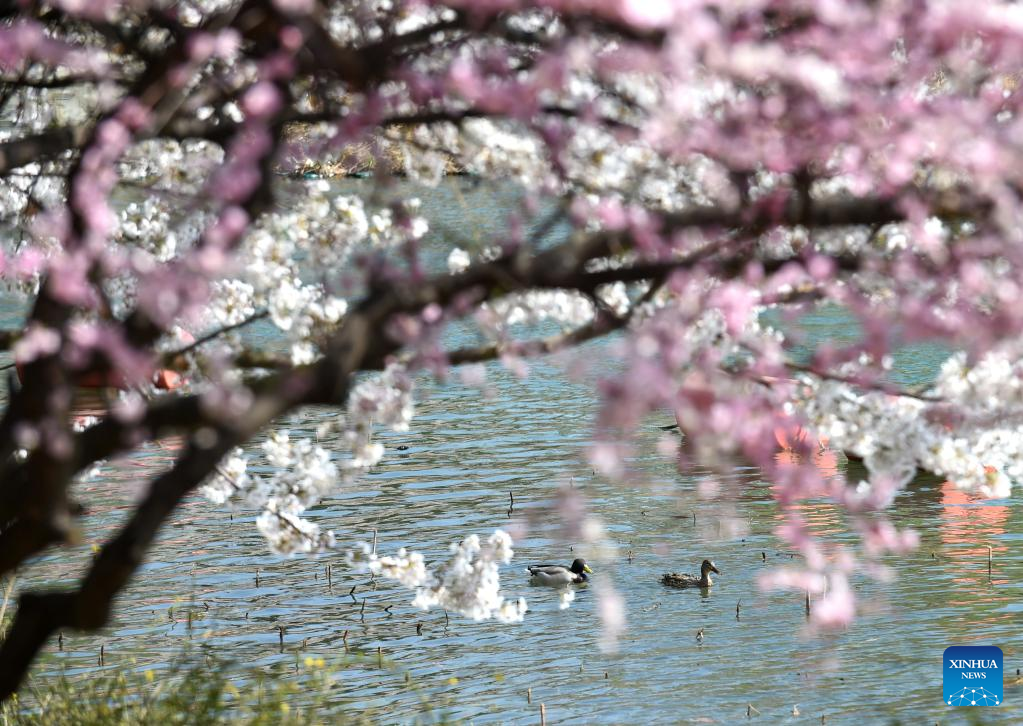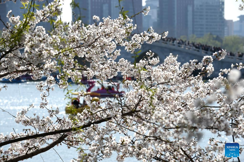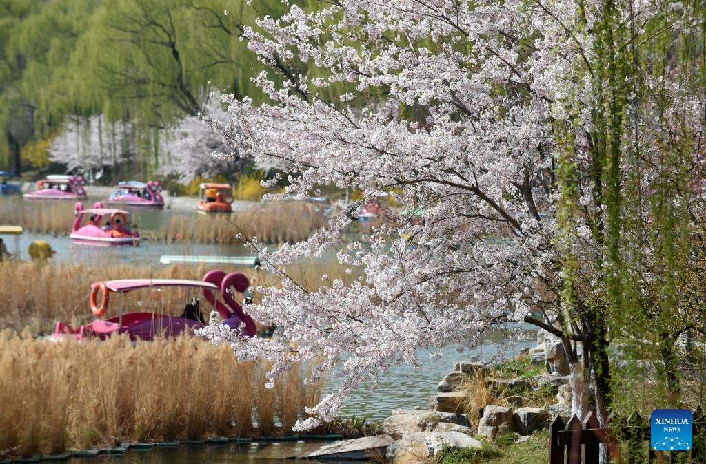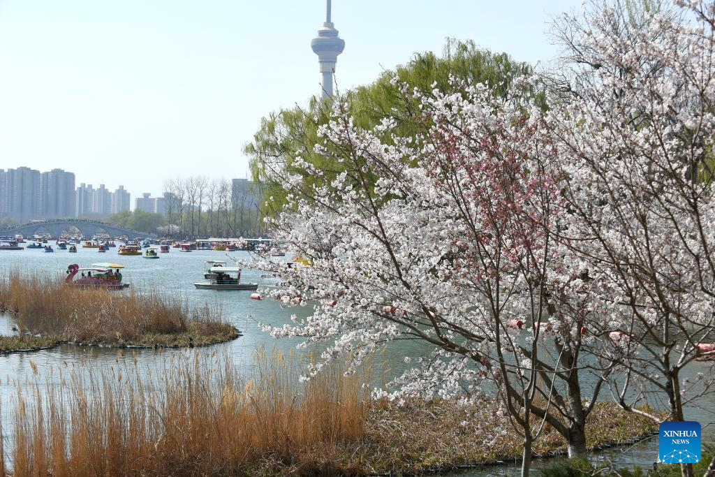 This photo shows the view of Yuyuantan Park in Beijing, capital of China, March 26, 2023. As the weather gets warm, blossoms are in full bloom at Yuyuantan Park. (Xinhua/Luo Xiaoguang)