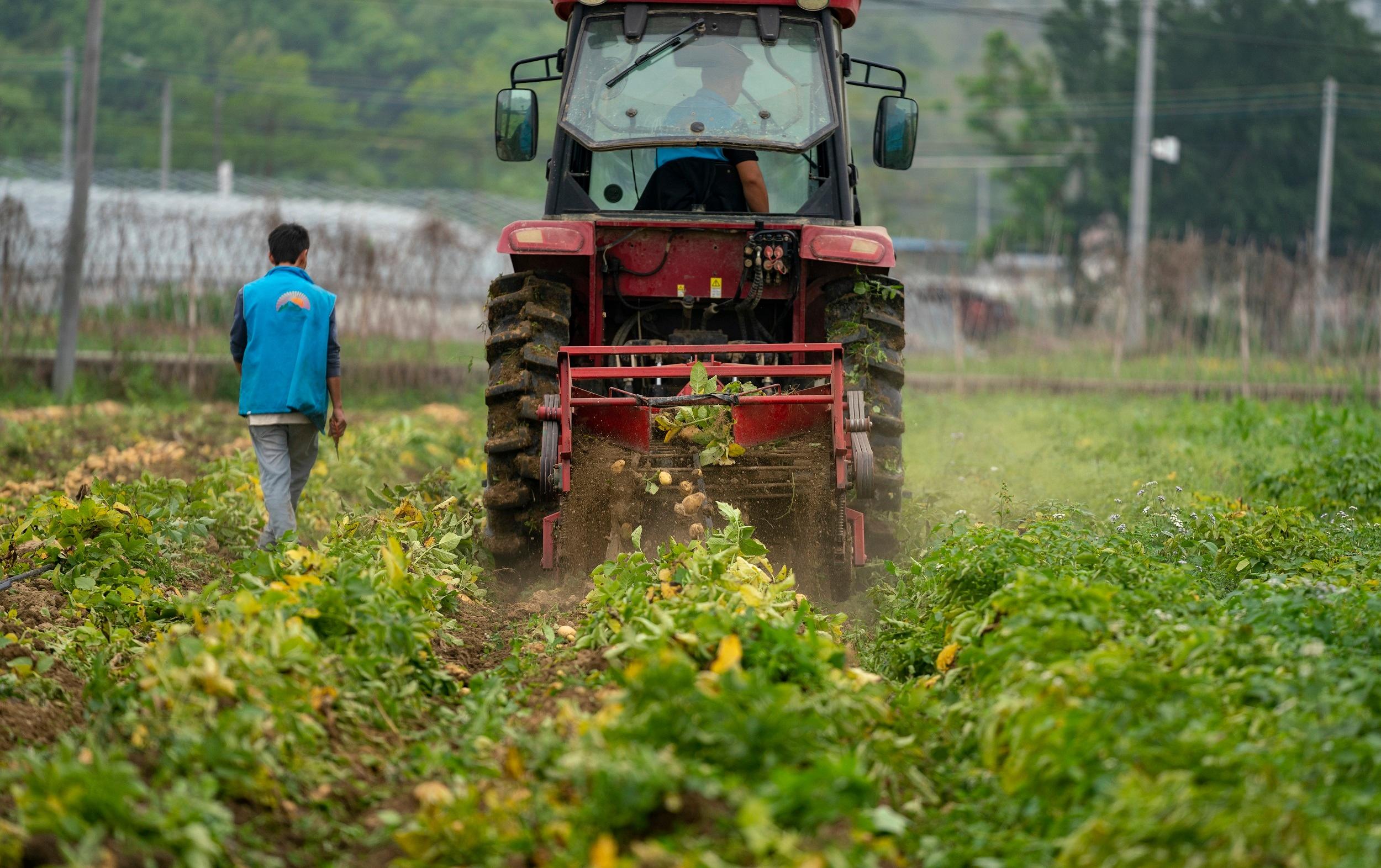Photo shows a harvester working in a potato field in Tianliang village, Qingxin district, Qingyuan, south China’s Guangdong Province. (Photo/Jiang Yuanwei)