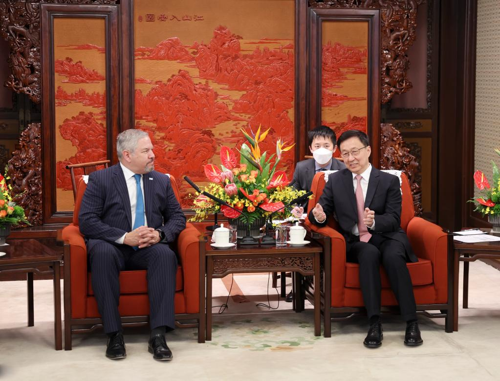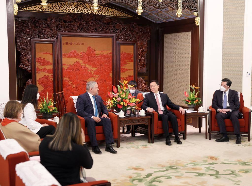 Han conveyed Chinese President Xi Jinping's cordial greetings and best wishes to Honduran President Xiomara Castro.