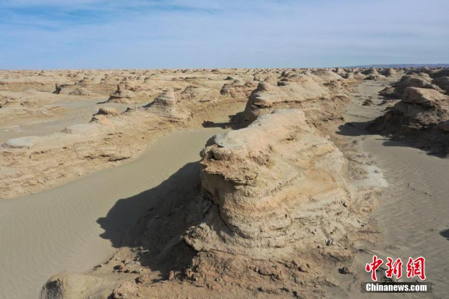 Unique alien-looking Yardang landform, a dry area with a landscape formed by wind erosion, in the Qaidam Basin of Haixi Mongolian and Tibetan Autonomous Prefecture, northwest China's Qinghai Province, March 26, 2023. (Photo: China News Service/Ma Mingyan)