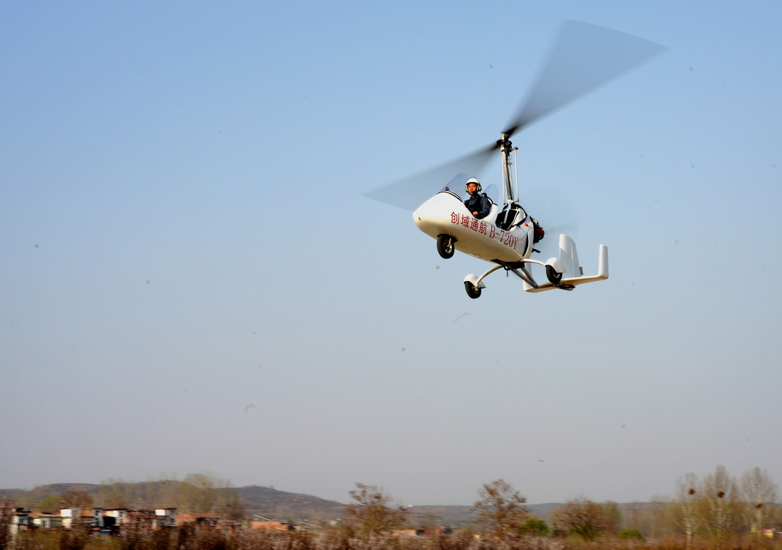 Yang Shiyi flies in his rotorcraft in Luoyang city, central China’s Henan Province, on March 14, 2023. (Photo/Xinhua)