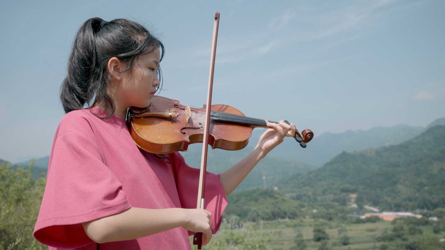 Xi Qingru plays the violin in the mountains on July 26, 2022,. (People's Daily Online/Liu Ning)